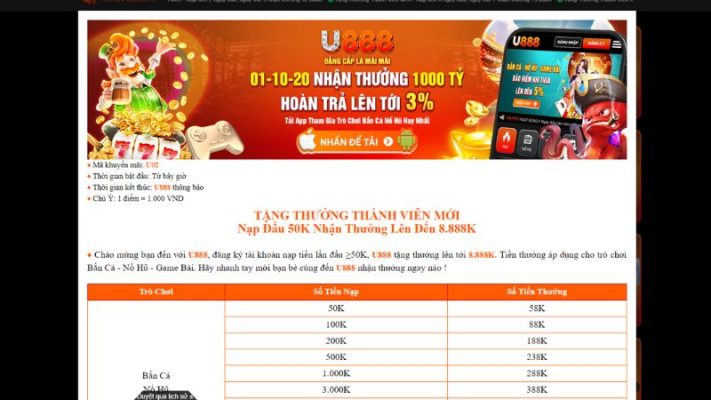 Tổng Hợp Ưu Đãi Thành Viên Mới Tại U888 Không Nên Bỏ Lỡ